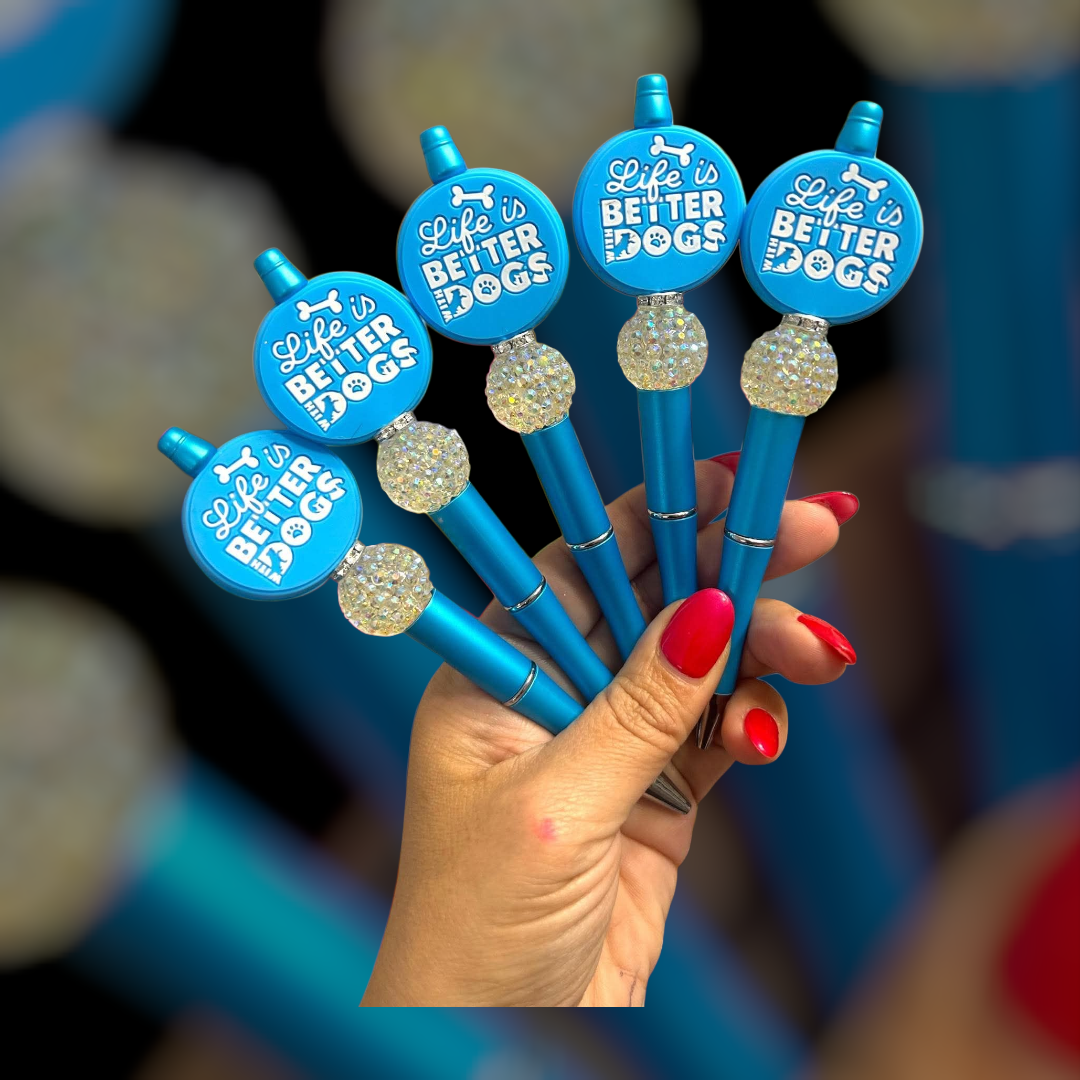 Life Is Better With Dogs Bead Pen – Blue Refillable Pen | Dog Lover Gift